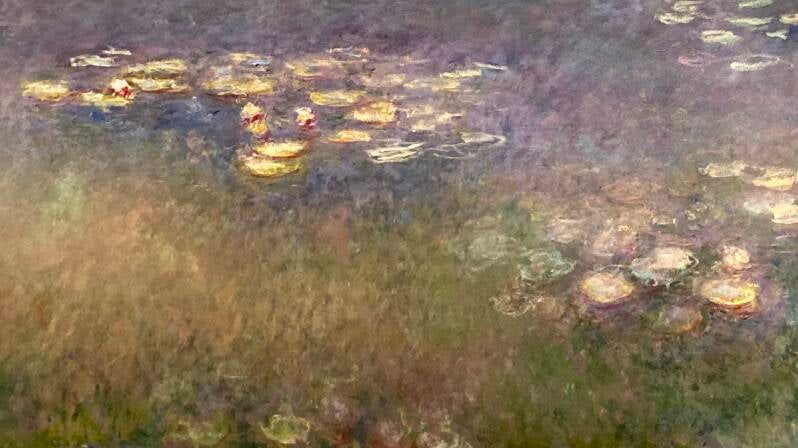 Doordat er geen oever of horizon te zien zijn, hebben je ogen weinig houvast. Je voelt meer dan dat je ziet – de weerspiegeling van wolken en bomen in het water, de waterlelies op het water. Je kunt verdwijnen in al die blauwe, paarse, roze en groene kleuren. De schilderijen zijn bijna abstract – maar niet helemaal – en dat overgangsgebied tussen figuratief en abstract maakt ze zo aangrijpend.
