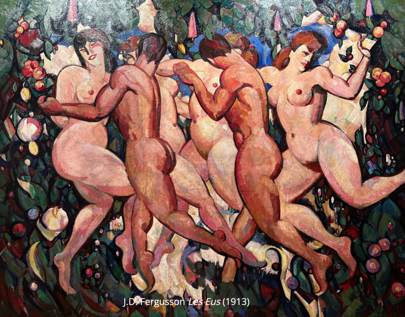 Dit werk van Fergusson wordt gezien als één van de belangrijkste Schotse werken uit begin 20e eeuw. Als je de titel niet begrijpt, geneer je niet, want Les Eus betekent niets in het Frans en verschillende kunsthistorici zijn al met de meest ingewikkelde verklaringen gekomen. Die leg ik nu terzijde.